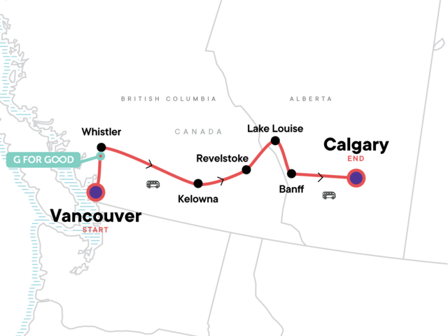 Your Foodie Moment: Okanagan Valley Wine Tasting, Kelowna. Lake Louise visit. Free time in Banff, Whistler, and Vancouver. All transport between destinations and to/from included activities.