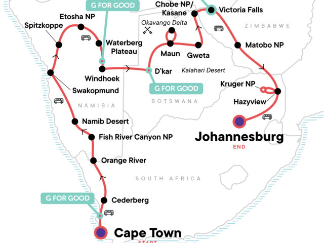 Now's the time to explore Africa on your terms with this tour that's affordable for young travellers. Like action, adventure, and wildlife documentaries? Then you’re going to love this trip. The itinerary reads like a special double-issue of your favourite travel mag: towering sand dunes, impossibly deep canyons, wildlife safari drives in Etosha, Kruger, and Matobo National Parks, the bone-shaking roar of Victoria Falls, traditional dinner and dance, campouts under a sprawling blanket of stars — and that’s just the start! With expert CEOs (Chief Experience Officers) and loads of optional activities available, you’ll run out of time before you run out of things to do, see, and experience.