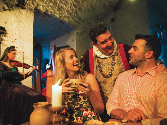 Discover the spectacular vistas of the Dingle Peninsula and its rugged coastline. See scenic Slea Head before going to the friendly town of Dingle for some free time. Depart Dingle, take a ferry across the Shannon Estuary, and arrive at your hotel in County Clare. This evening, dine at a medieval-style feast, where lords and ladies will serenade you with songs and music from days of yore. (B, D)