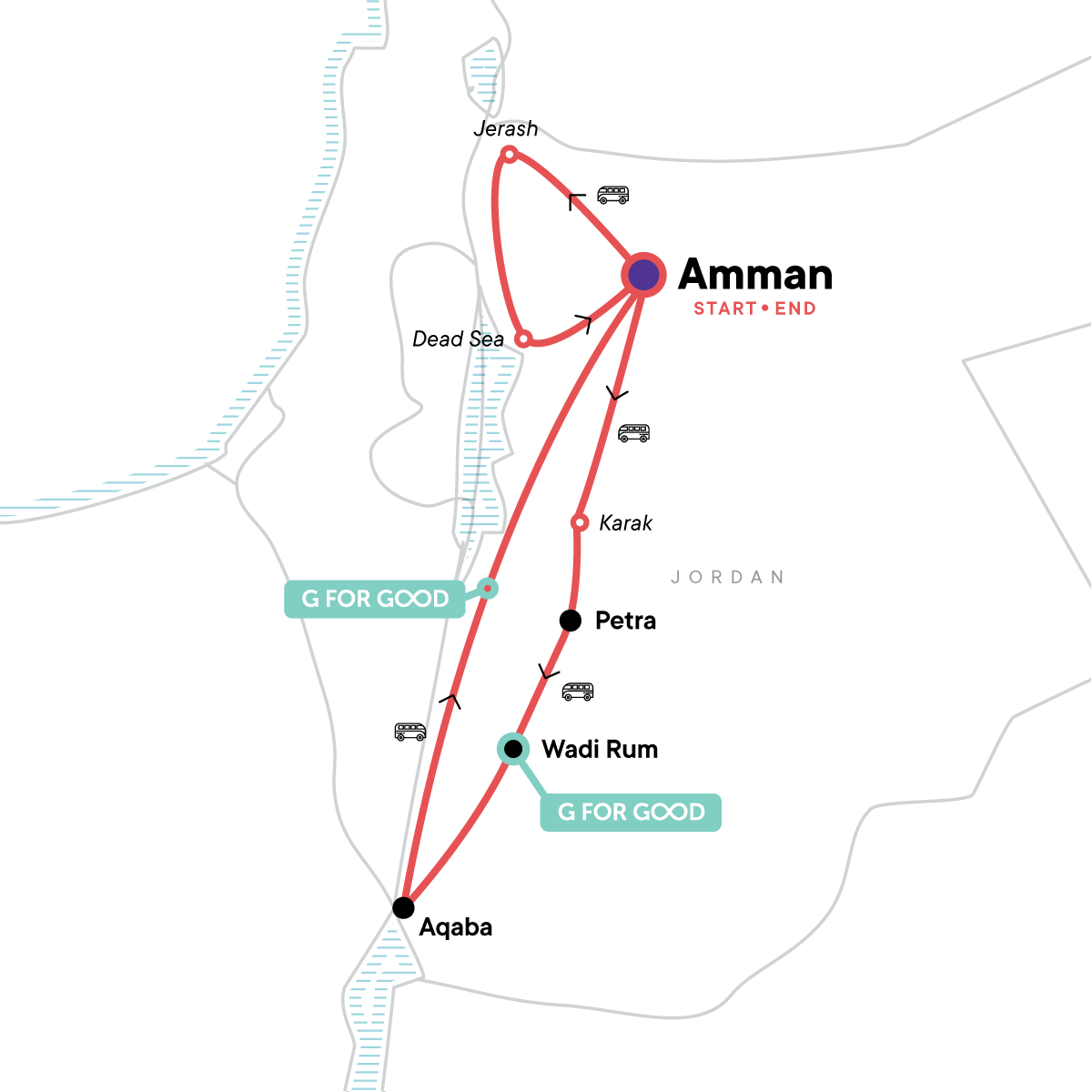 Your Local Living Moment: Bedouin Camp Overnight, Wadi Rum. Jerash guided tour. Dead Sea visit. Visit Madaba mosaics and Mt Nebo. Karak Castle guided tour. Petra guided tour. Wadi Rum 4x4 excursion. Red Sea stay. Entrance fees in all included tours. All transport between destinations and to/from included activities.