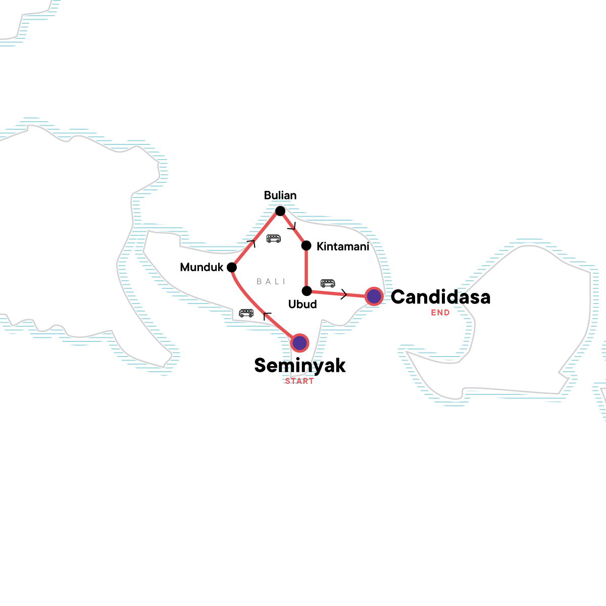 Your Discover Moment: Ubud. Jatiluwih Rice Terraces Visit. Ulun Danu Temple Complex Visit. Banjar Hot Springs. Singaraja Traditional Market. Beji Temple. Bulian Village Tour. Lemukih Village Trek. Free time in Mt Batur. Penglipuran Village Visit. Pura Gunung Kawi Sebatu Temple. Free time in Ubud. Free time in Candidasa. Transport to/from included activities.
