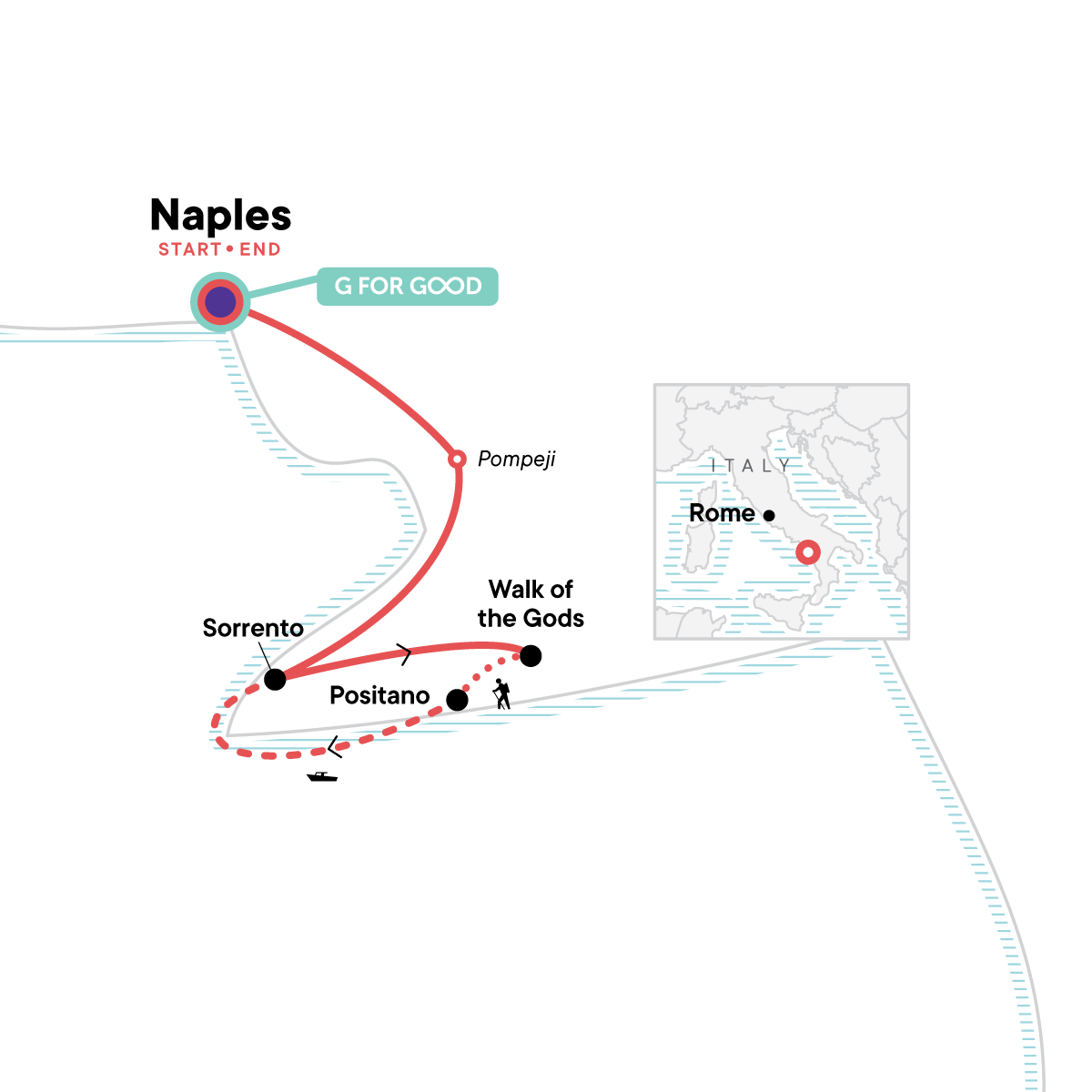 Your Foodie Moment: Limoncello Making Demonstration, Sorrento. Guided tour of Pompeii. "Path of the Gods" hike. Scenic boat ride from Positano to Sorrento. One evening cooking demonstration. Orientation walks in Naples and Sorrento. Transport between destinations and included activities.