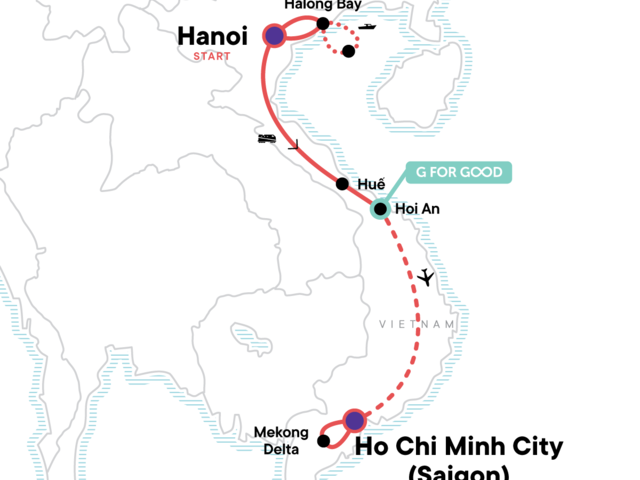 Your Local Living Moment: Mekong Homestay, Mekong Delta. Arrival transfer. Cyclo tour through Old Quarter (Hanoi). Water puppets show. Halong Bay boat trip. Citadel tour in Hue. City cyclo tour in Hanoi and Ho Chi Minh City. Mekong Delta boat trip.